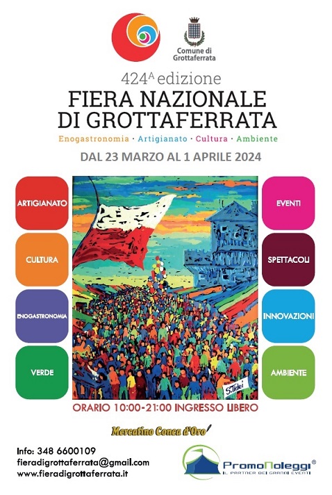Dal 23 marzo al 1° aprile 2024, si svolgerà l’annuale fiera nazionale di Grottaferrata. Il Parco regionale dei Castelli Romani parteciperà alla manifestazione, con uno stand in cui verrà esposto il materiale promozionale dell’Ente, volto ad approfondire la conoscenza dell’area naturale protetta.