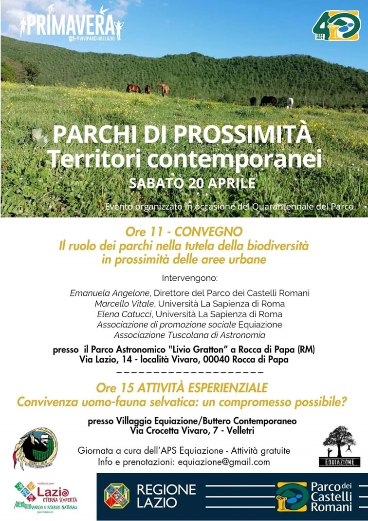 L’iniziativa rientra nell’ambito degli eventi del quarantennale e sarà occasione di confronto tòra i vertici del Parco dei Castelli Romani, esponenti dell’Università “La Sapienza” di Roma, le associazioni Equiazione e ATA.