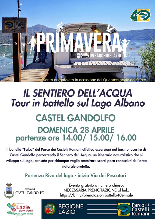 In occasione del fine settimana dedicato a Castel Gandolfo, ci sono ancora dei posti disponibili, domenica 28 aprile, per il tour in battello sul lago Albano, iniziativa lanciata sul canale whatsapp dell’Ente, al quale invitiamo ad iscriversi tutti coloro che non lo hanno ancora fatto.