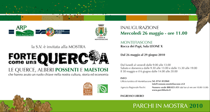 Mercoledì 26 marzo 2010 si terrà, alle ore 11.00 presso la Rocca dei Papi a Montefiascone, l'inaugurazione della mostra "Forte come una Quercia". La mostra rimarrà esposta fino al 29 giugno 2010.