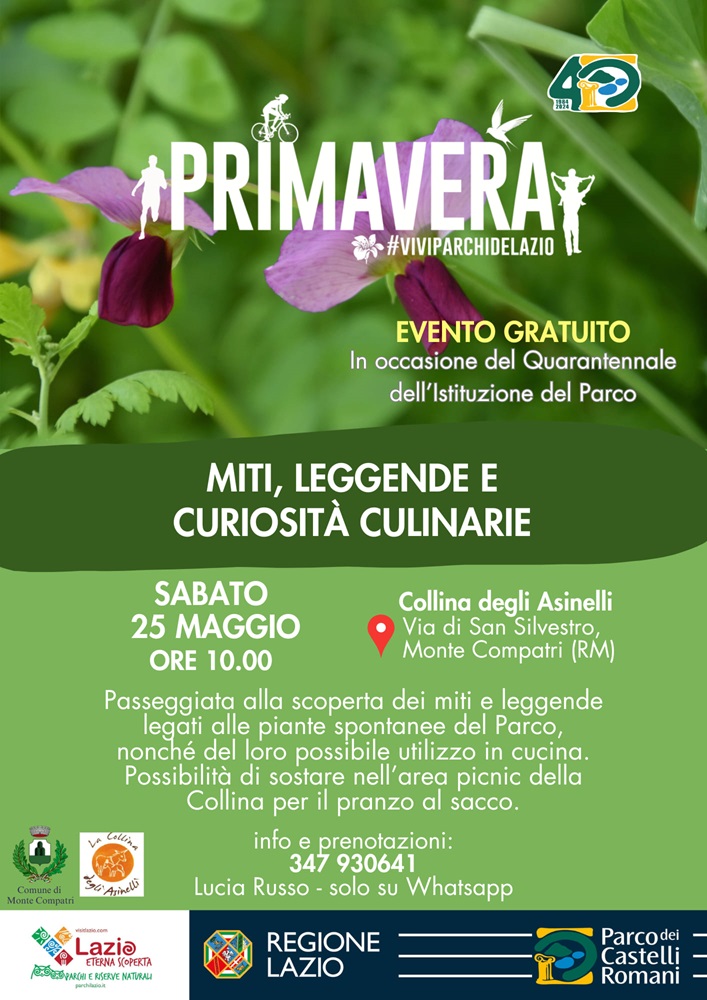 Sabato 25 alle ore 10.00, si svolgerà l’evento: “Miti, Leggende e Curiosità Culinarie”, presso la Collina degli Asinelli. Una passeggiata alla scoperta dei miti e leggende legati alle piante, nonché del loro possibile utilizzo in cucina. Possibilità di sostare per il pranzo al sacco, nell’area pic-nic della Collina. L’evento è gratuito, è necessaria la prenotazione al seguente contatto: Lucia Russo, 347 930641 (solo whatsapp).