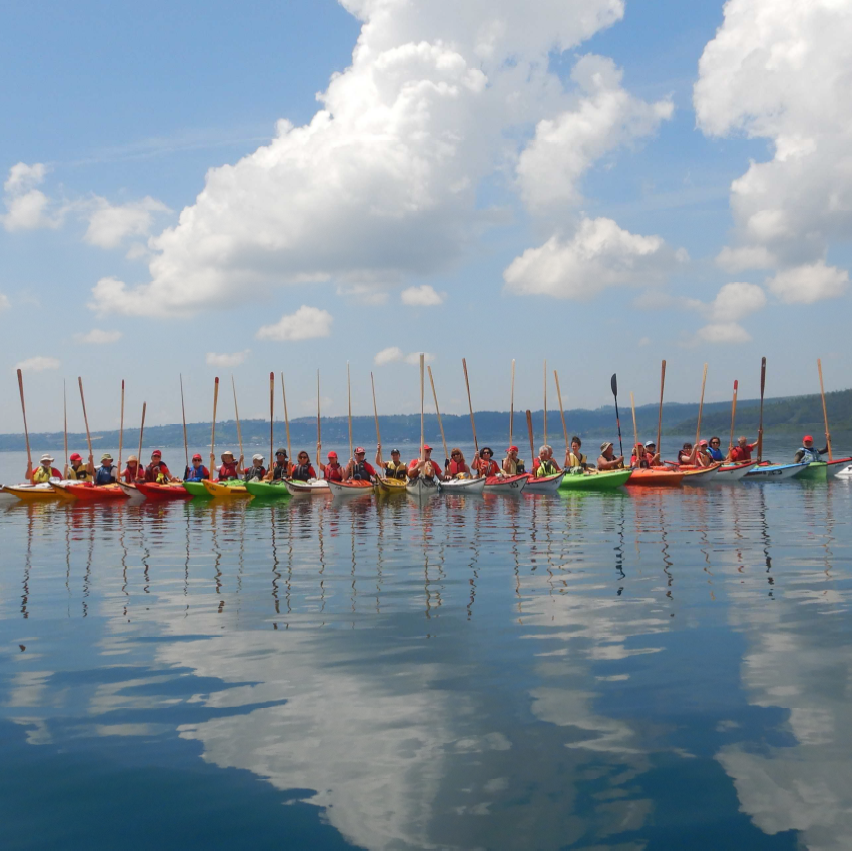 escursione guidata aperta a tutti con apprendimento di tecniche base di pagaiata e di sicurezza. Cenni storici e archeologici, sosta sul sito della villa romana imperiale, pranzo al sacco, sosta al casale di Martignano, ritorno.