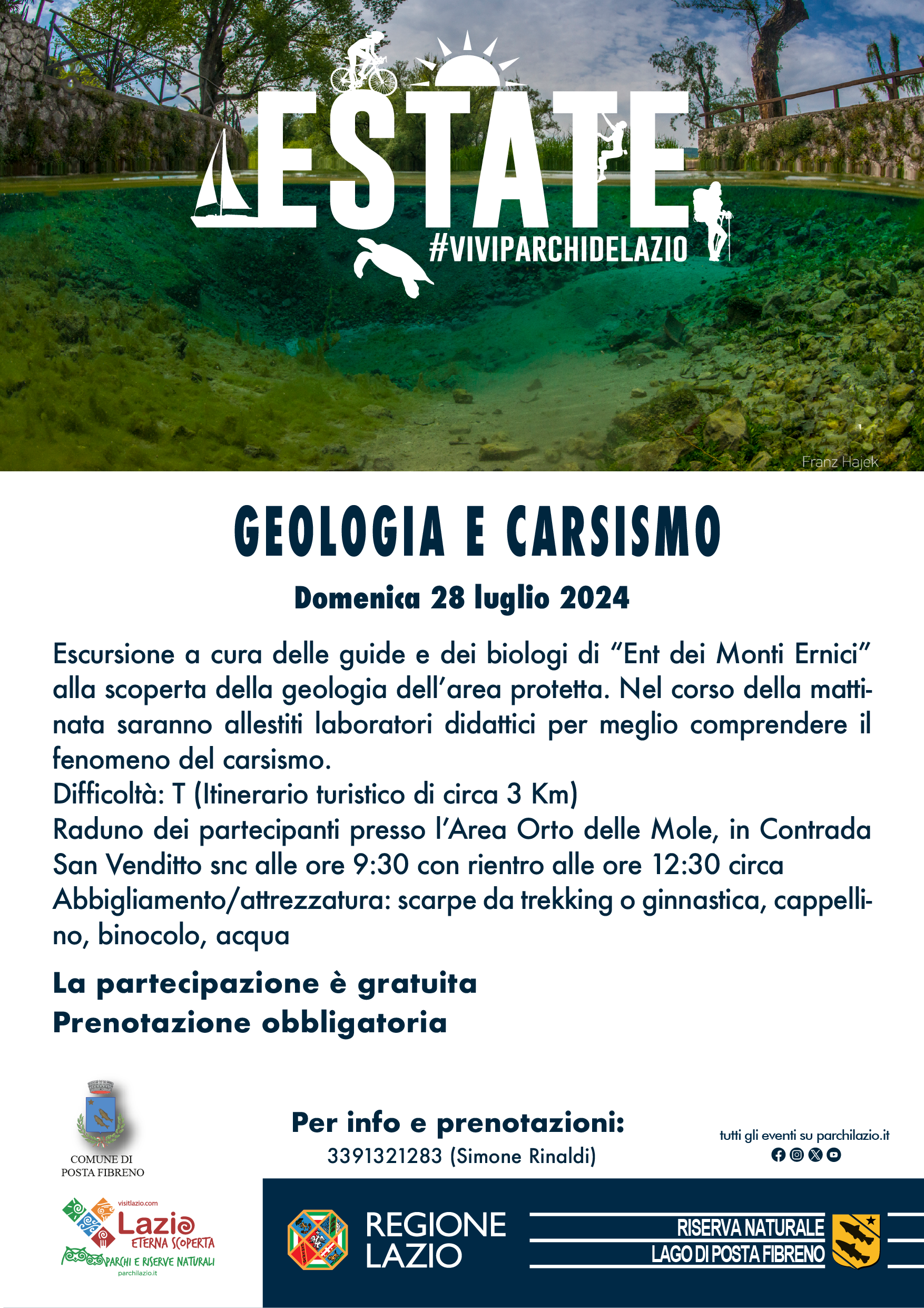 Domenica 28 luglio 2024 vi aspettiamo alle ore 9:30 a Posta Fibreno, presso l’Area Orto delle Mole in Contrada San Venditto snc, per partecipare all’interessante escursione “Geologia e carsismo” a cura  di “Ent dei Monti Ernici”