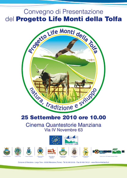 Sabato 25 settembre 2010 dalle ore 10.00 alle ore 13.00 presso il Cinema Quantestorie in via IV Novembre 63 a Manziana si terrà il convegno per la presentazione del Progetto Life Monti della Tolfa.