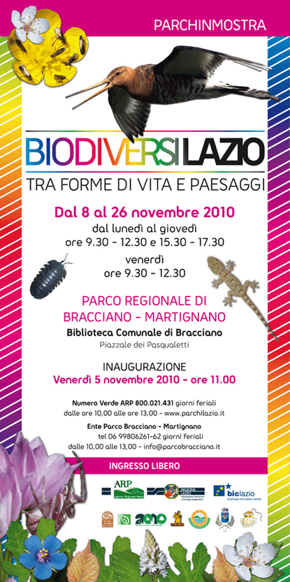 Venerdì 5 novembre alle ore 11.00, presso la Biblioteca Comunale di Bracciano (piazzale dei Pasquitti), si terrà l'inaugurazione della mostra "BiodiversiLazio - Tra forme di vita e paesaggi". Sarà possibile visitare la mostra dall'8 al 26 novembre 2010 dal lunedì al giovedì dalle 9.30 alle 12.30 e dalle 15.30 alle 17.30 e il venerdì dalle 9.30 alle 12.30.