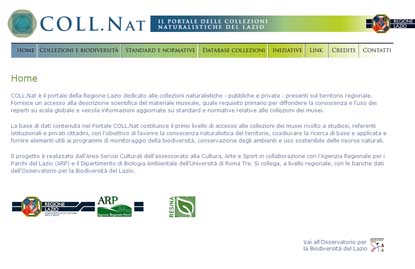 E' on-line il nuovo portale delle collezioni naturalistiche del Lazio - Coll.Nat - frutto della collaborazione tra l'Agenzia Regionale per i Parchi del Lazio, l'Area Servizi Culturali dell'Assessorato alla Cultura, Arte e Sport e il Dipartimento di Biologia Ambientale dell'Università di Roma Tre.