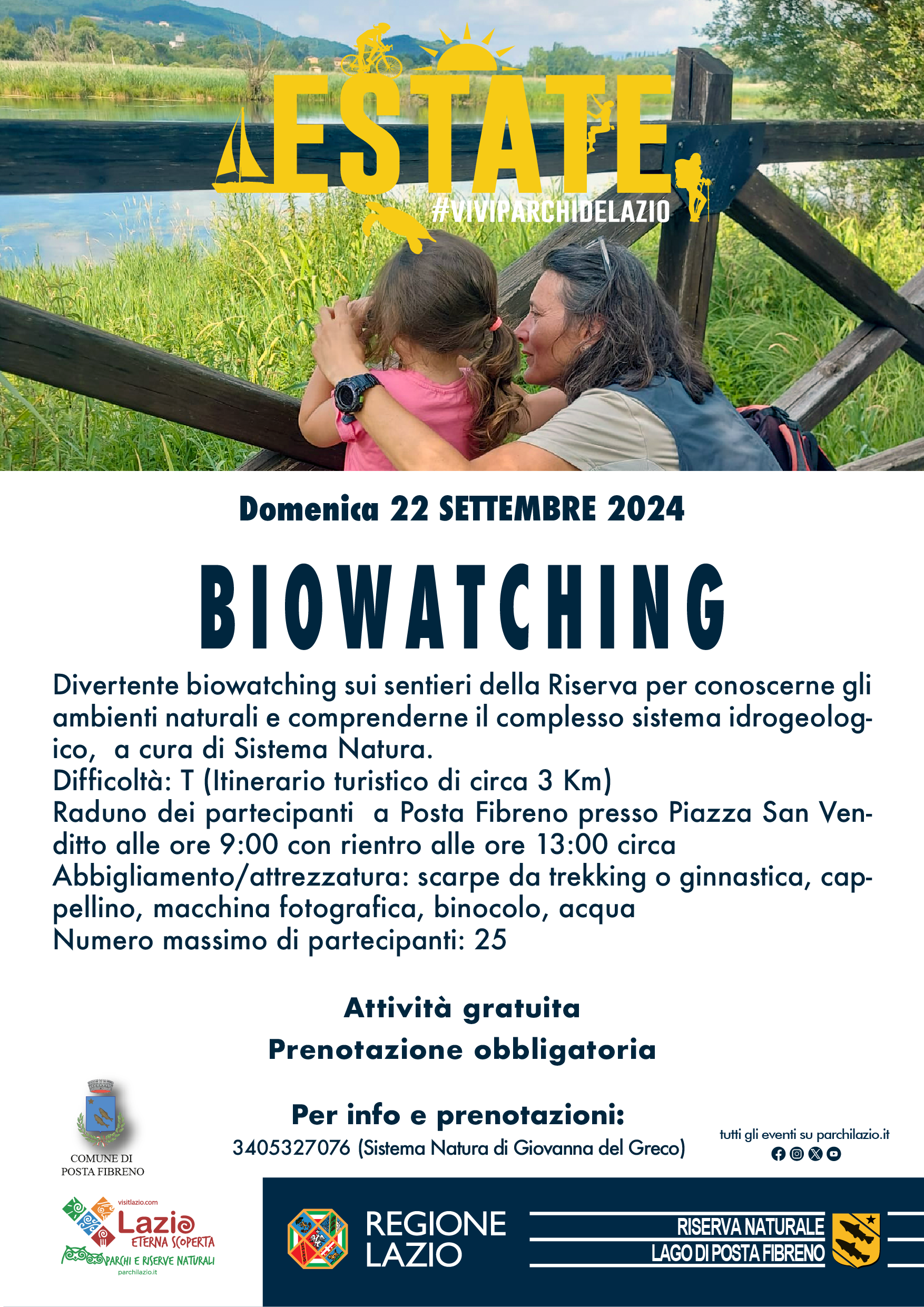 Domenica 22 settembre 2024 “Biowatching nella Riserva Naturale lago di Posta Fibreno”.