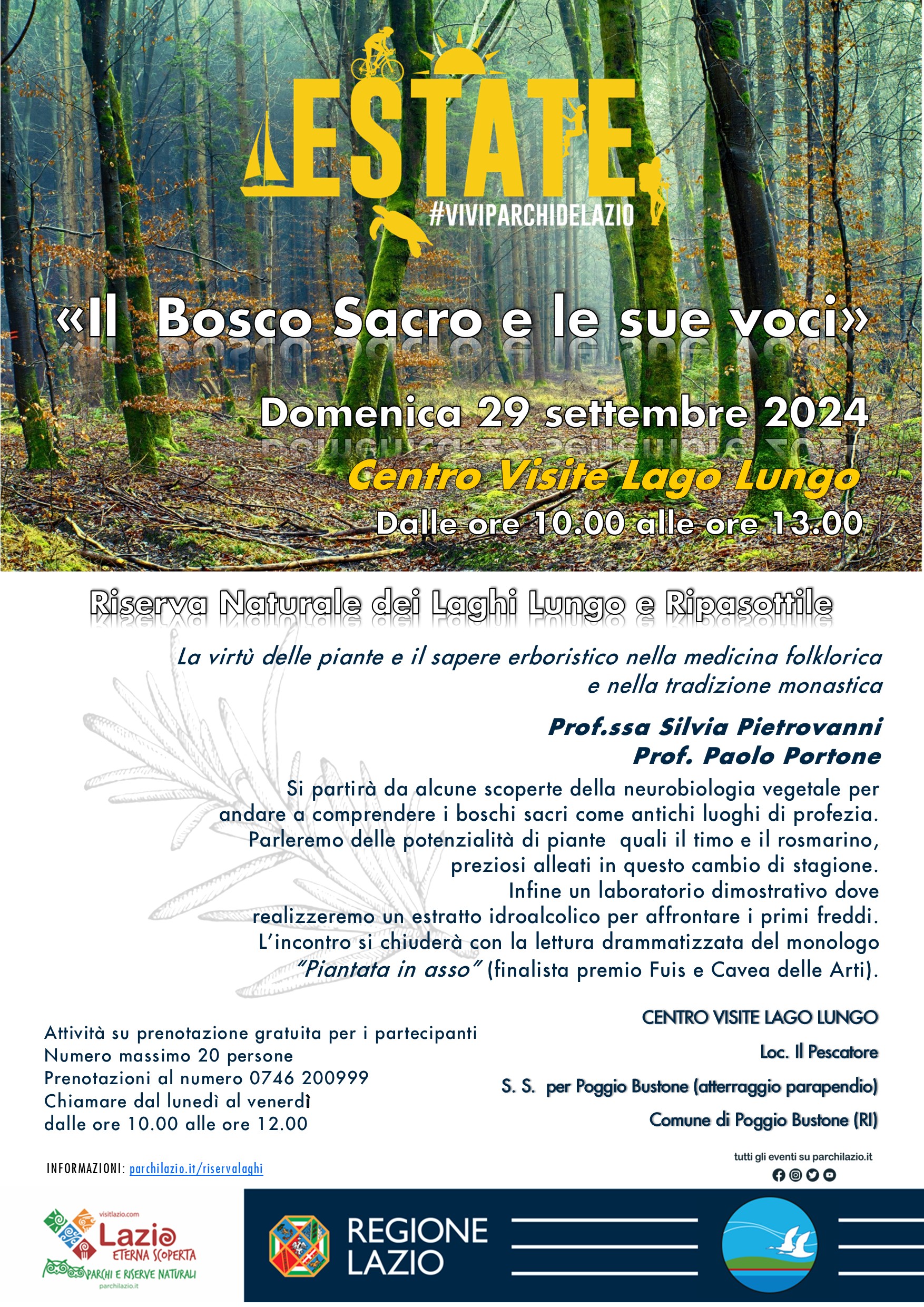 La Riserva Naturale dei Laghi Lungo e Ripasottile organizza, per domenica 29 settembre 2024, a partire dalle ore 10.00, presso il Centro Visite del Lago Lungo, una conferenza programmata all'interno degli eventi estate nei Parchi del Lazio, dove la partecipazione è gratuita.
