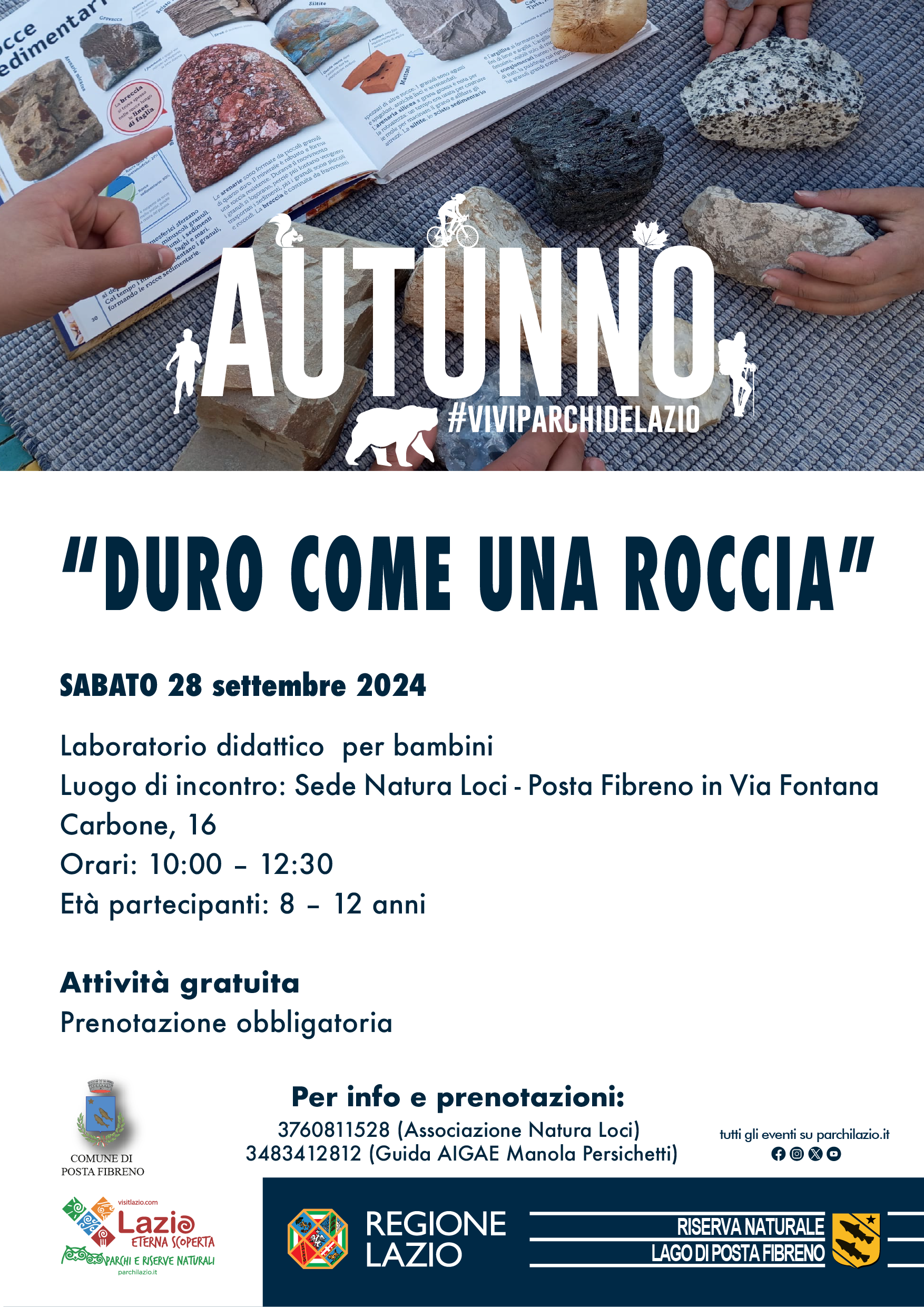 Con il laboratorio didattico per bambini “Duro come la roccia” si concludono sabato 28 settembre 2024 gli eventi organizzati dalla Riserva Naturale lago di Posta Fibreno per l’estate 2024.