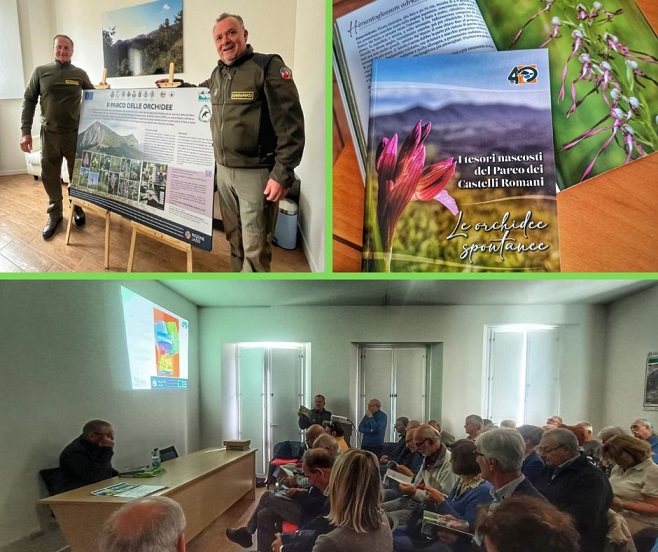 L'Ostello del pellegrino di Vallepietra (RM), nel Parco regionale dei Monti Simbruini, ha ospitato il convegno "Amatori orchidee spontanee del Lazio" al quale ha partecipato anche il Parco dei Castelli Romani, con il responsabile del Servizio Guardiaparco, Vittorio Castellana, e il guardiaparco Stefano Mancinelli, in qualità di relatore presentando il libro da poco pubblicato dall'Ente Parco, dal titolo "I tesori nascosti del Parco dei Castelli Romani - le orchidee spontanee".