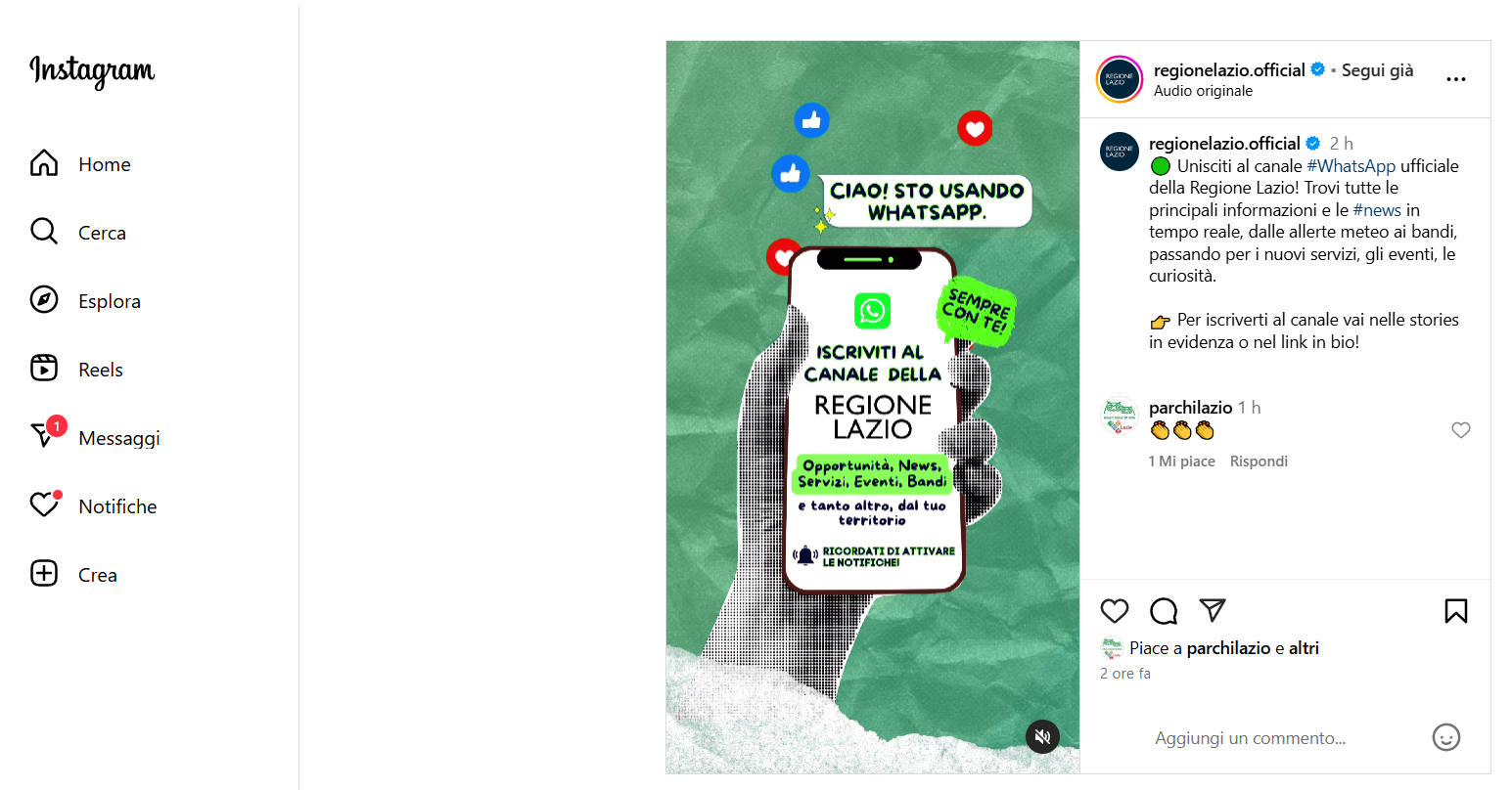 Unisciti al canale #WhatsApp ufficiale della Regione Lazio!