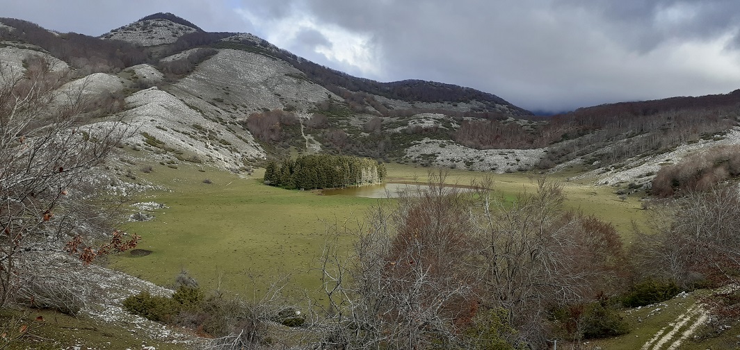 Il piano di Rascino rappresenta una depressione carsica in cui sono presenti diverse doline coalescenti. La superficie ospita un laghetto permanente il cui drenaggio è regolato da un sistema di inghiottitoi. La piana è interessata dalla presenza di alcuni sinkhole di forma circolare ed ellittica.
