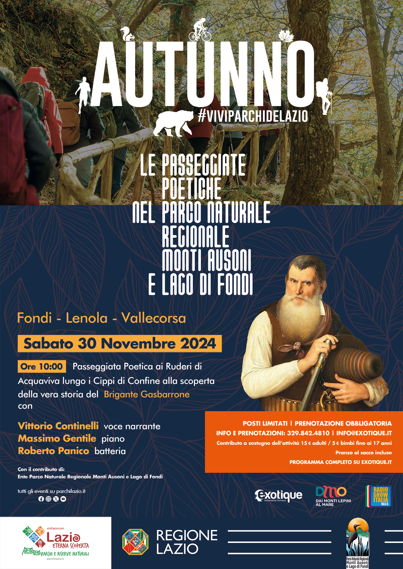 La Passeggiata Poetica è realizzata con il contributo dell’Ente Parco Naturale Regionale Monti Ausoni e Lago di Fondi e con il supporto dell’Associazione DMO dai Monti Lepini al Mare.