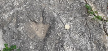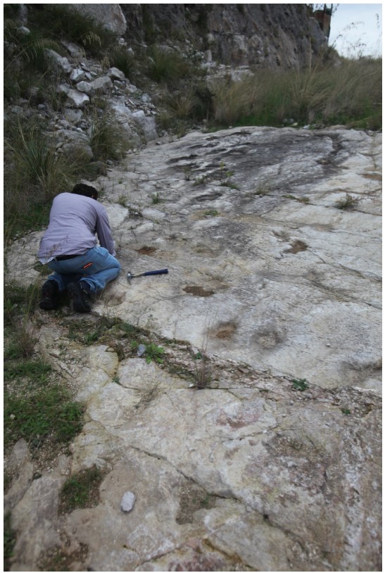 Nel sito di Sezze, alle pendici occidentali dei Monti Lepini, le impronte sono conservate su tre distinte superfici di strato affioranti alla base di una successione appartenente al cosiddetto “dominio Laziale-Abruzzese-Campano”. La porzione mesozoica della successione lazialeabruzzese- campana si depositò su una piattaforma carbonatica produttiva dal Triassico Superiore al Cretaceo Superiore.
