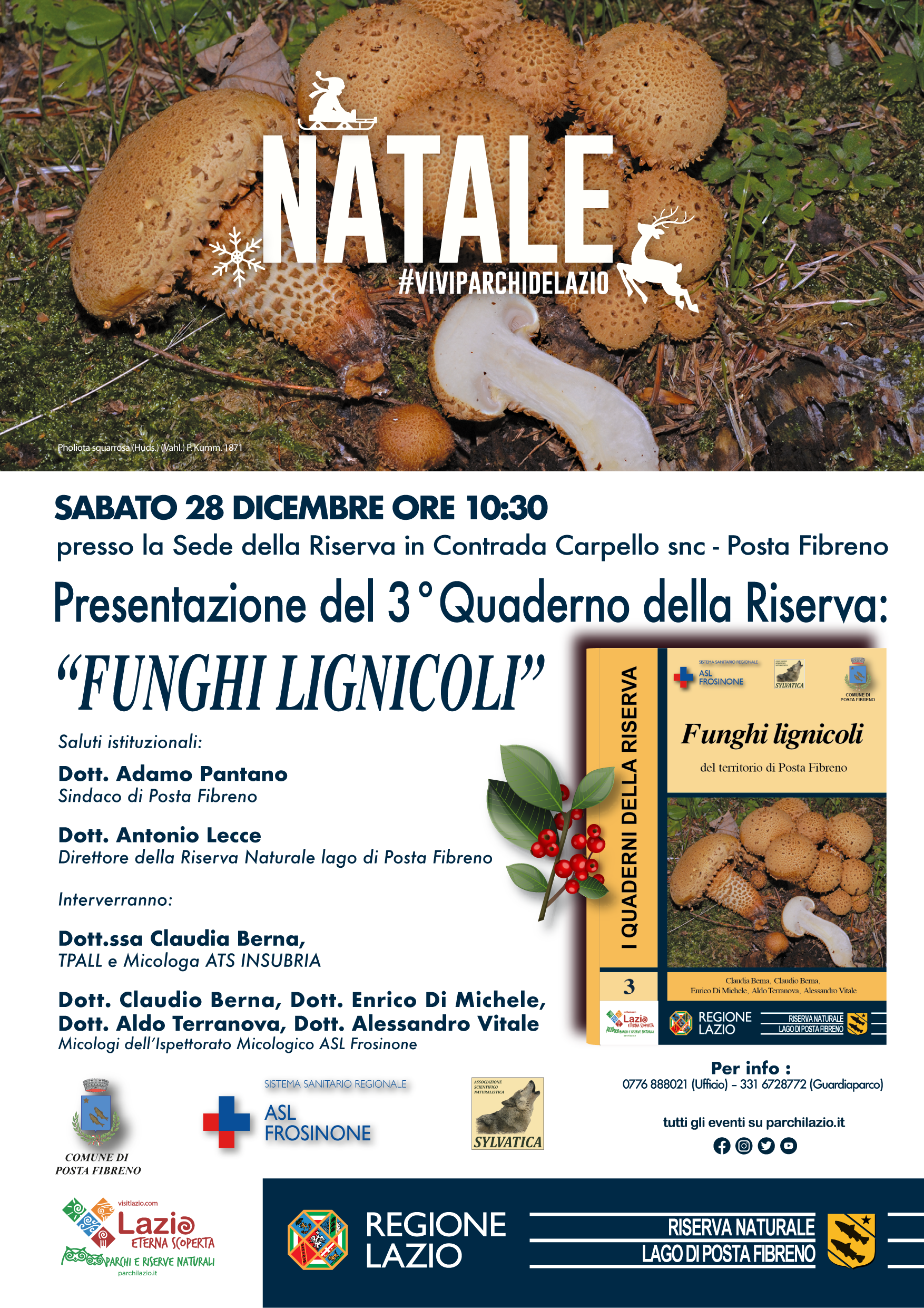 Sabato 28 dicembre, alle ore 10:30, presso la sede della Riserva Naturale lago di Posta Fibreno, in Contrada Carpello snc, si terrà la presentazione del 3° Quaderno della Riserva “FUNGHI LIGNICOLI”.