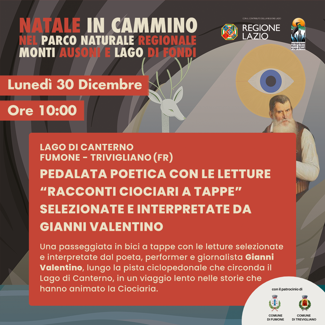 [🚲] La Pedalata Poetica con le letture “Racconti Ciociari a Tappe” selezionate e interpretate dal poeta, performer e giornalista Gianni Valentino, lungo la pista ciclopedonale che circonda il Lago, in un viaggio lento nelle storie che hanno animato la Ciociaria.