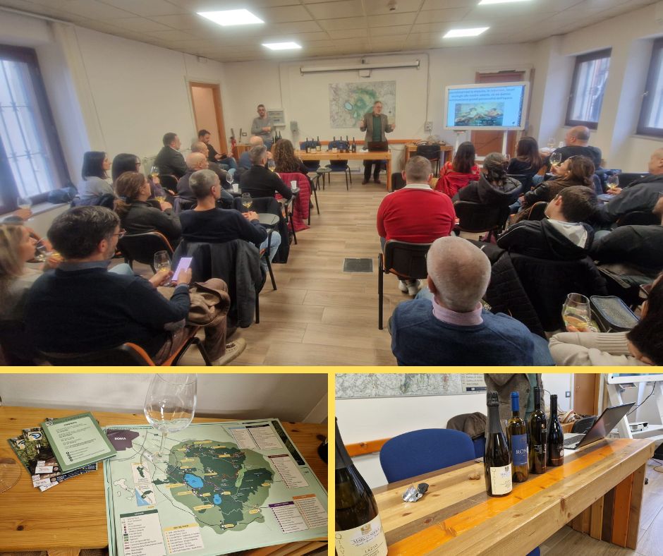 Una sala gremita ha assistito sabato 22 marzo, al Minicorso di assaggio dei vini del territorio del Parco dei Castelli Romani, tenuto dal sommelier Marco Romagnoli, presso l’aula didattica di Villa Barattolo, sede dell’Ente Parco.