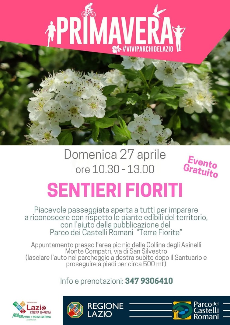 Domenica mattina, 27 aprile, vi aspettiamo presso la Collina degli Asinelli - via San Silvestro, Monte Compatri (RM) per l’attività a cura dell’Appha odv "Sentieri Fioriti", la tipica passeggiata primaverile che ci insegna a riconoscere le piante del territorio con l'aiuto della pubblicazione del Parco "Terre Fiorite".