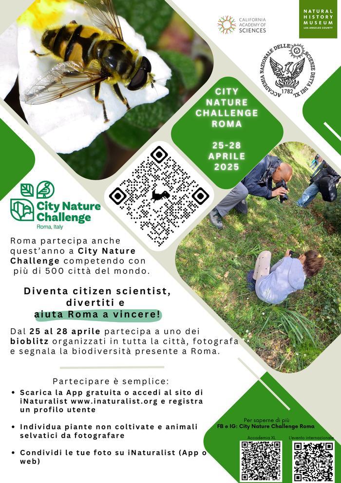 Anche per il 2025 l’intero territorio della Città metropolitana di Roma Capitale sarà coinvolto nel City Nature Challenge 2025 (CNC) per documentare la biodiversità e diffondere la cultura della tutela dell’ambiente, con il coordinamento dell’Accademia Nazionale delle Scienze detta dei XL.