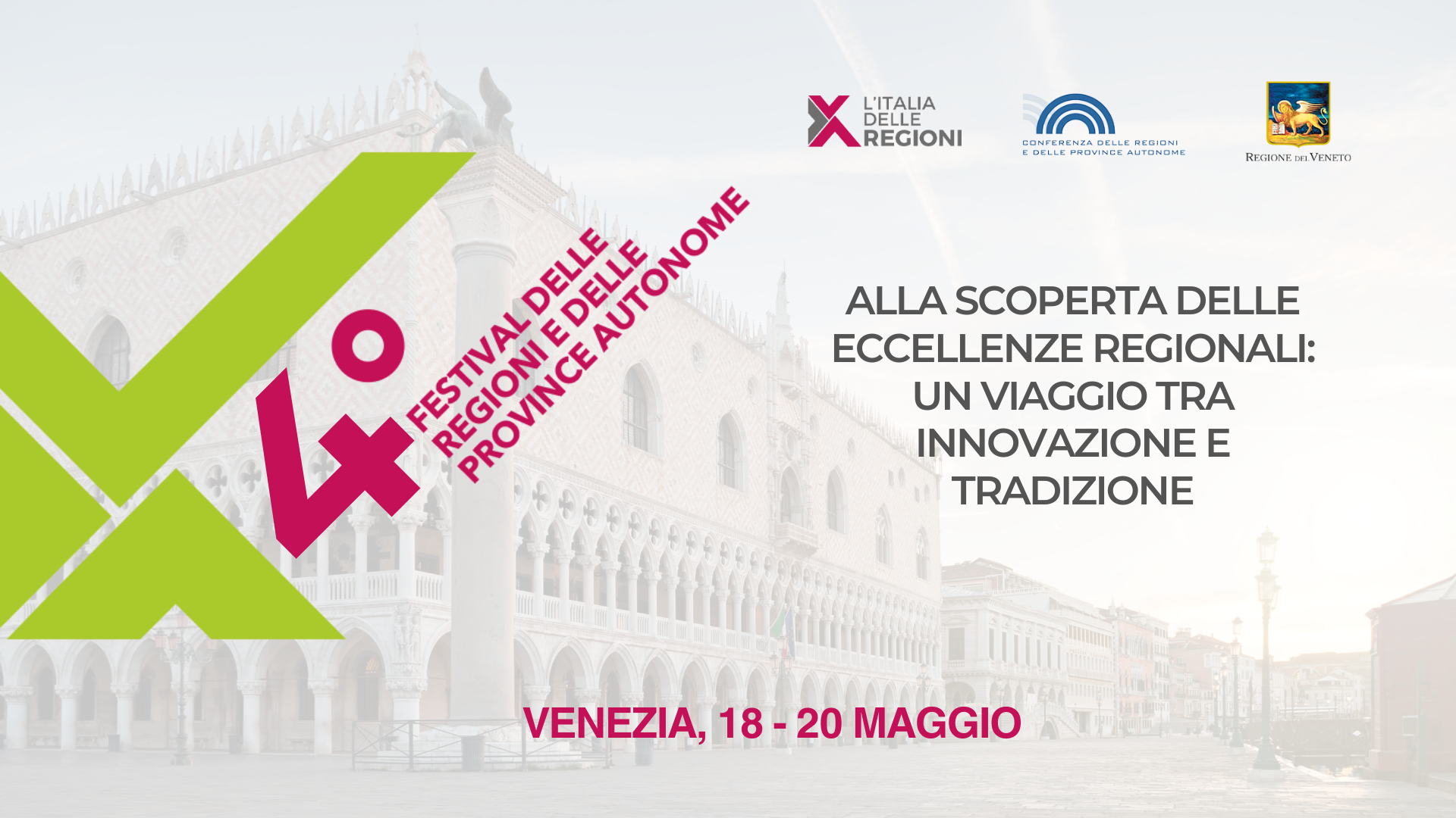 Dal 18 al 20 maggio 2025, a Venezia, per il quarto anno consecutivo torna “L’Italia delle Regioni - Festival delle Regioni”, organizzato dalla Conferenza delle Regioni e delle Province Autonome, quest’anno in collaborazione con la Regione Veneto.