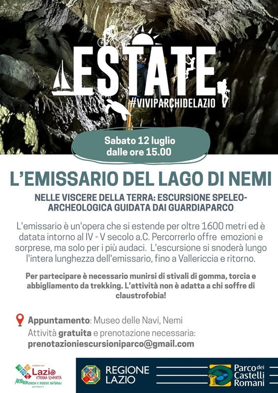 Sabato 12 luglio alle ore 15.00, l’appuntamento è presso il Museo delle Navi di Nemi (RM), per l’escursione speleo-archeologica guidata dai Guardiaparco “Nelle Viscere della Terra”.