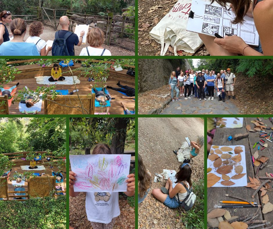 Tra la fine di luglio e l’inizio di agosto, le iniziative si sono svolte sia ai Castelli Romani che a Tor Caldara, che è stata protagonista del laboratorio esperienziale rivolto alle famiglie “Bosco d’arte – crea, ascolta e scopri”. Il gruppo di partecipanti sia adulti che bambini, ispirati dalla natura e seguendo la fantasia hanno realizzato creazioni artistiche con i materiali raccolti lungo i sentieri della Riserva.