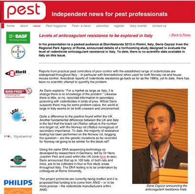 Alcuni siti web inglesi parlano dell'Arp grazie ad uno studio realizato da Dario Capizzi, esperto dell'Area Biodiversità e Geodiversità dell'Arp, in collaborazione con Riccardo Castiglia e Paolo Colangelo, ricercatori dell' Università di Roma "La Sapienza". Lo studio, dal titolo "La resistenza agli anticoagulanti in Italia: proposta operativa per un primo monitoraggio del fenomeno", è stato presentao il 6 marzo scorso a Rimini in occasione della 3° Expo-Conference della Disinfestazione Italiana.