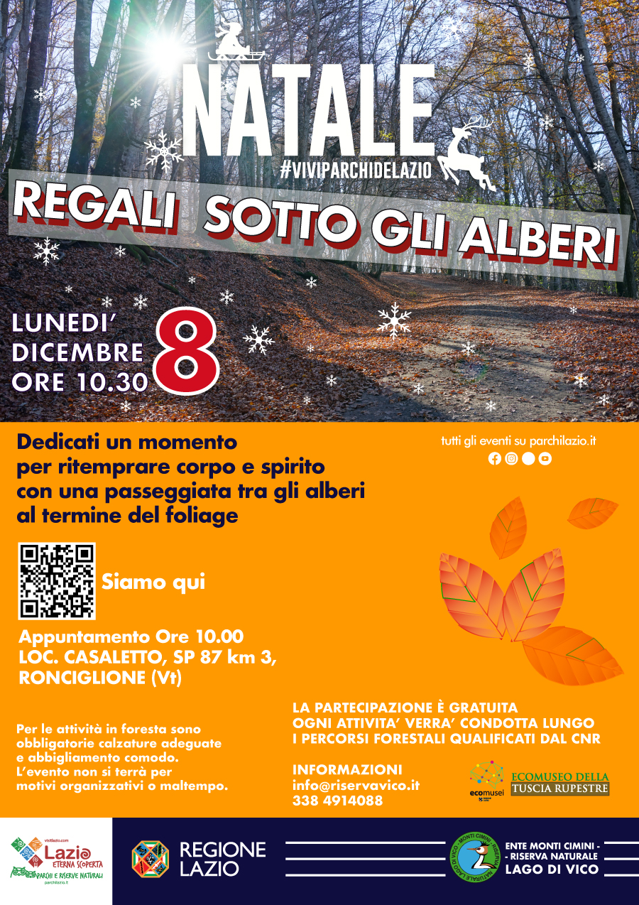 Lunedì 8 Dicembre, in occasione dell'Immacolata Concezione, evento festivo che trae le sue origini sin dalle età più antiche, l'Ente organizza una piacevole camminata alla conoscenza dei servizi ecosistemici, ossia dei veri e propri "regali" che la Natura fa per il nostro benessere... e non solo a Natale!.
