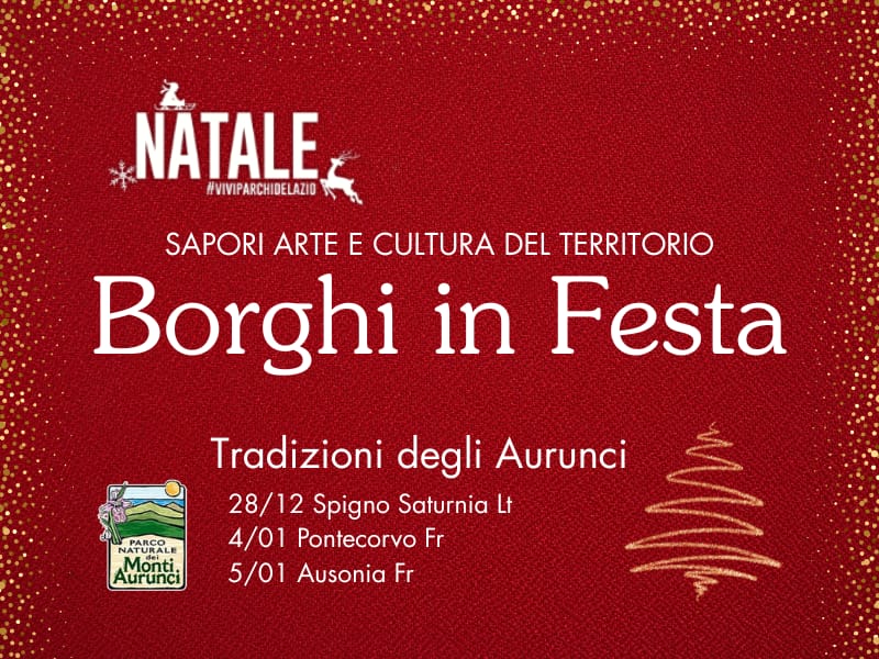 Nel periodo delle festività natalizie il Parco Naturale dei Monti Aurunci promuove Borghi in Festa – Tradizioni degli Aurunci, un calendario di iniziative che coinvolge alcuni centri del territorio del Parco, con l'obiettivo di valorizzare le tradizioni locali, la cultura popolare e i prodotti tipici.