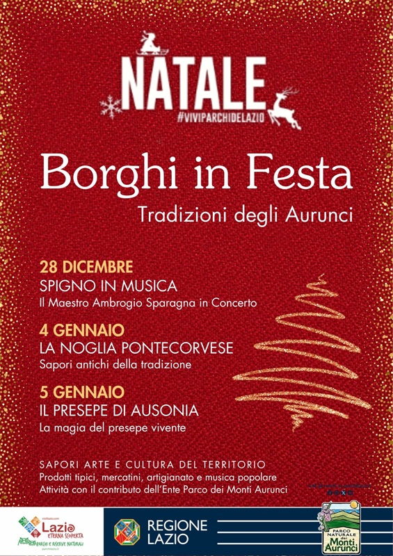 Le iniziative rientrano nel calendario Natale – #viviparchidelazio e sono realizzate con il contributo dell'Ente Parco Naturale dei Monti Aurunci, in collaborazione con la Regione Lazio – Parchi e Riserve Naturali.