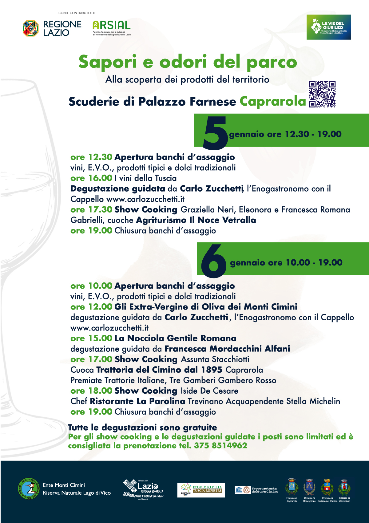 Siete tutti invitati ad una grande manifestazione pensata per far conoscere ed apprezzare i prodotti locali. Organizzata dall'Ente Monti Cimini - Riserva Naturale Lago di Vico è stata resa possibile grazie al contributo dell'ARSIAL e la collaborazione con i Comuni ed i produttori dell'area Cimina. Due giorni ricchi di iniziative, incontri con i protagonisti dell'enogastronomia, degustazioni di prodotti. Una manifestazione dedicata al territorio dei Monti Cimini e ai prodotti tipici che nascono da un ricco e fertile substrato vulcanico. quello della Tuscia rupestre.