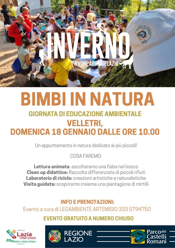 Domenica 18 gennaio dalle ore 10.00 a Velletri (RM), il Circolo Legambiente Artemisio aspetta i più piccoli per una mattinata all'insegna dell'educazione ambientale e del divertimento!