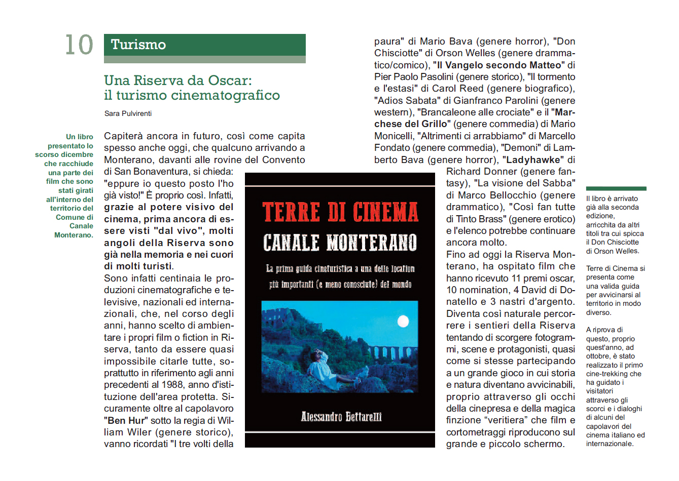 Capita spesso che qualcuno, arrivando a Monterano, si chieda: "eppure io questo posto l'ho già visto!" È proprio così. Infatti, grazie al potere visivo del cinema, prima ancora di essere visti “dal vivo”, molti angoli della Riserva sono già nella memoria e nei cuori di molti turisti. Sono infatti centinaia le produzioni cinematografiche e televisive, nazionali ed internazionali, che, nel corso degli anni, hanno scelto di ambientare i propri film o fiction in Riserva, tanto da essere quasi impossibile citarle tutte.