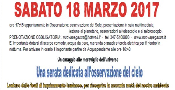 "Un omaggio alle meraviglie dell'Universo" serata dedicata all'osservazione del cielo.