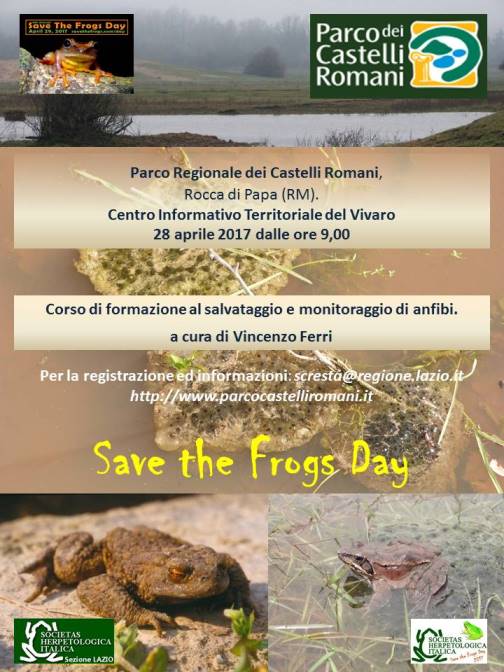 Si svolgerà venerdì 28 aprile 2017 dalle 9.00 alle 13.30, presso il Centro Informativo Territoriale del Vivaro nel Parco regionale dei Castelli Romani, un corso, seguito da una visita nell’area SIC Cerquone-Doganella, (la sessione di campo potrebbe necessitare di una parte di approfondimento nel primo pomeriggio, dalle ore 14.30 alle 16.30), che ospita una delle batracocenosi più ricca e numerosa del Lazio.