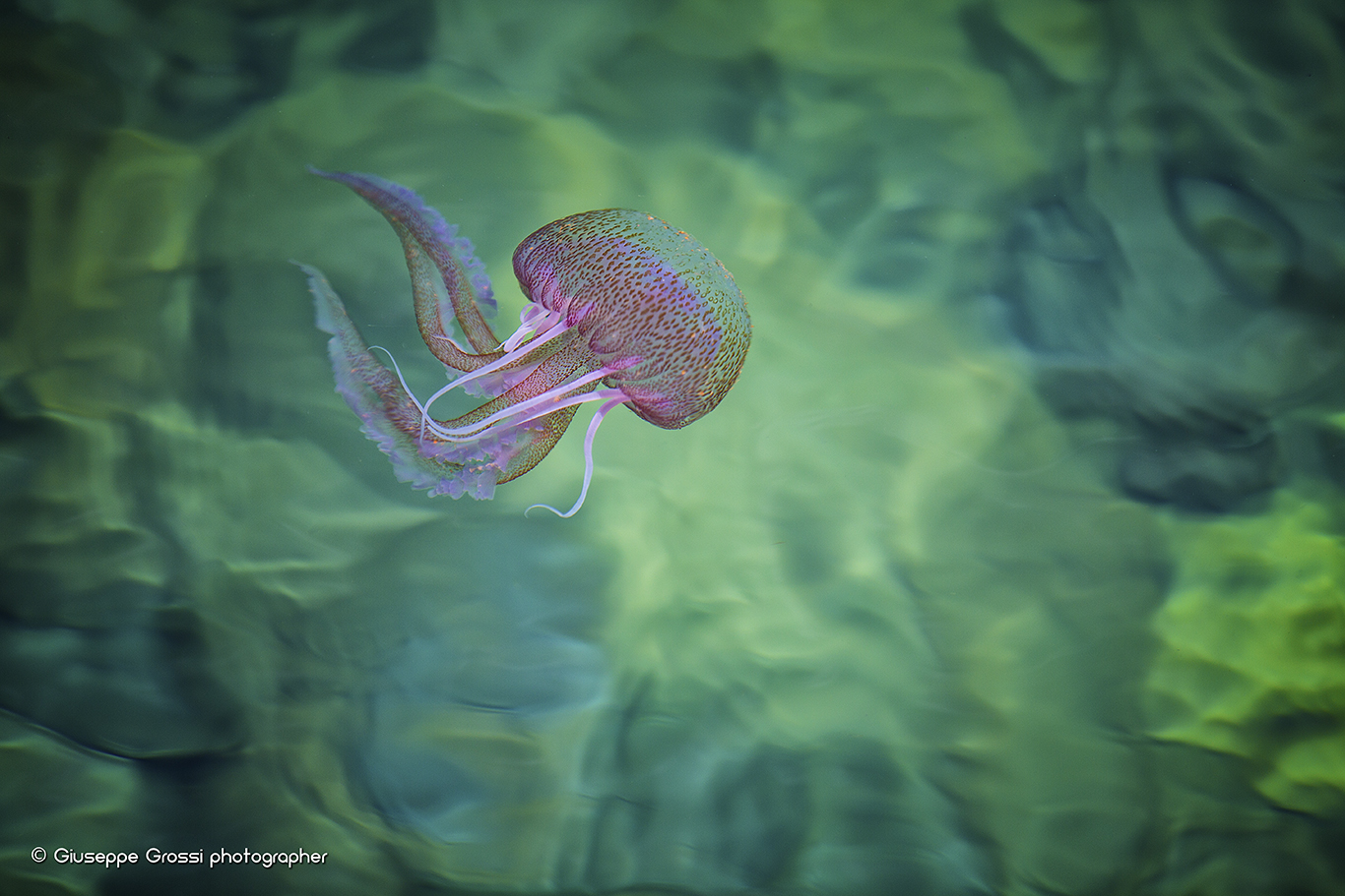 Tanto bella quanto urticante, la Pelagia nocticula è una piccola #medusa comune nel Mediterraneo. La si può vedere di notte, luminosa, vicino alla riva del mare, insieme ad altre centinaia di sue compagne fluttuanti, trasportate dalle correnti.