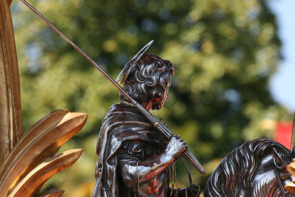 La processione della Reliquia di Sant'Ambrogio, ha mantenuto il nome originario di quando le Confraternite erano quattro, come pure le processioni ed i giorni dei festeggiamenti. Attualmente, a seguito dello scioglimento di dette confraternite, si svolge una sola ma spettacolare manifestazione dove, ad illuminare il percorso del corteo, provvedono un susseguirsi di torce, lampadine e lampioncini appesi alle finestre delle abitazioni. La settecentesca statua equestre del Santo Patrono viene trasportata a spalla, da sedici giovani "incollatori" in saio amaranto, fino alla Chiesa dei SS. Giovanni e Paolo, costruita sull'acropoli dove si crede sia stato imprigionato il Santo. Al termine del percorso, quale gesto buon augurante, si bruciano vecchi oggetti fuori uso in due grandi falò accesi a Porta S. Agata e in Piazza S. Lucia.
