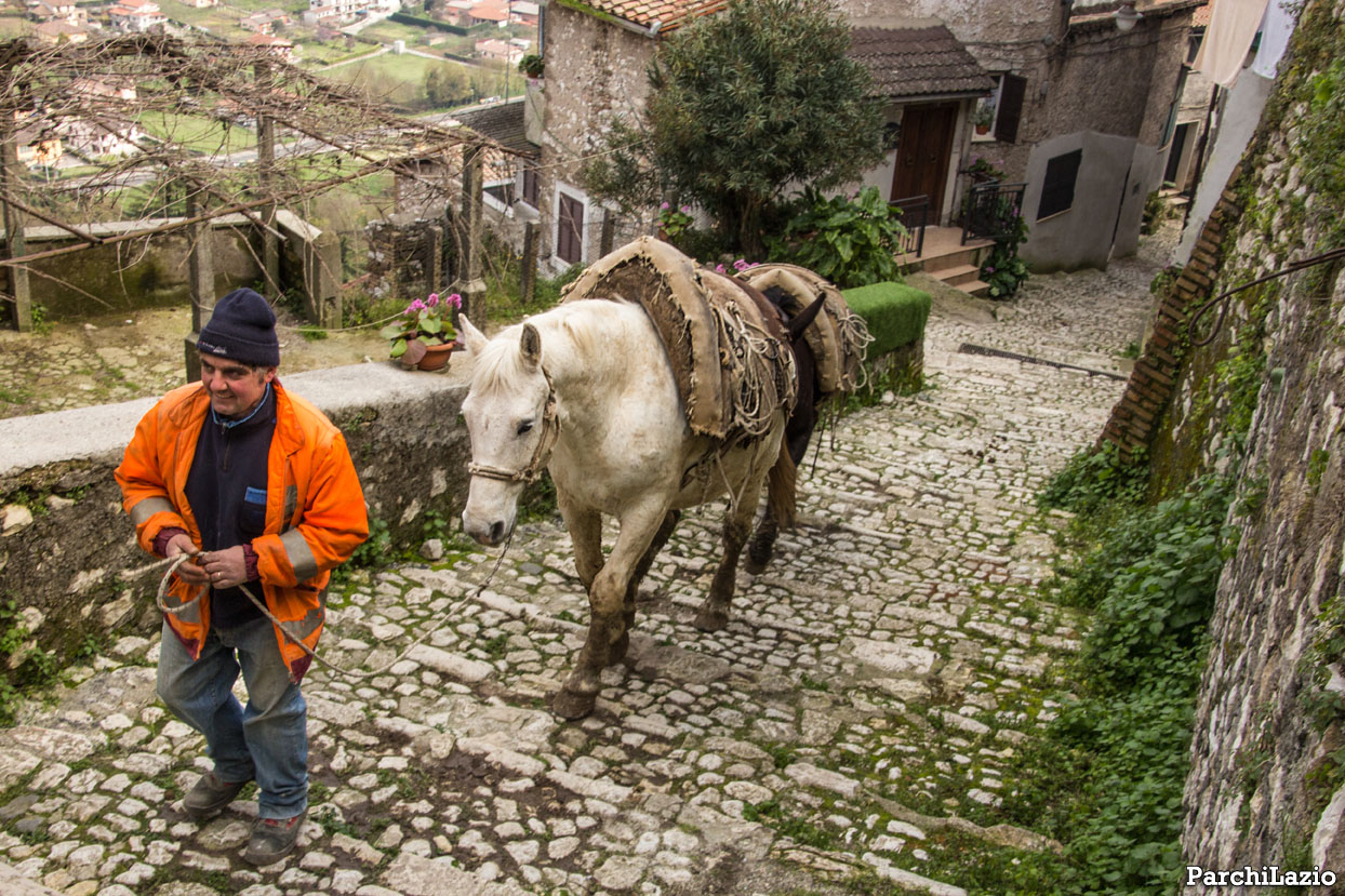 Artena: una cascata di case aggrappate alla montagna: qui i muli sono impiegati per la raccolta differenziata.