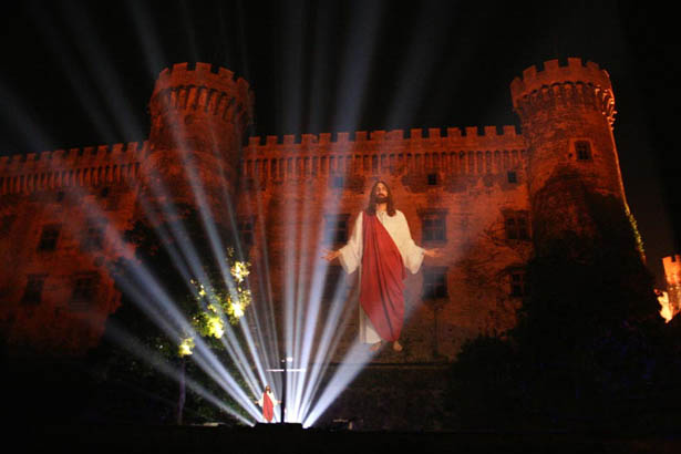 La Resurrezione viene riproposta nella cornice d'eccezione del bastione principale del Castello Odescalchi, a 15 metri di altezza, con suggestive illuminazioni. L'ascesa al cielo è simboleggiata con una proiezione dell'immagine del Cristo alta come la facciata del maniero, accompagnata da una musica imponente. Una scena che richiede l'impiego di un impianto luci da 150Kw e un impianto audio da 10.000W.