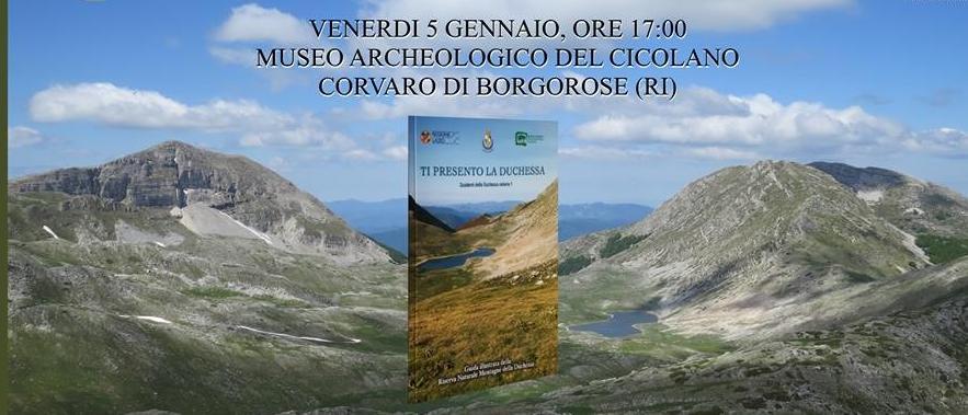 Venerdì 5 gennaio alle ore 17,00 presso il Museo Archeologico Cicolano, a Corvaro di Borgorose (RIETI ), verrà presentato il libro “Ti presento la Duchessa. Guida illustrata della Riserva Naturale Montagne della Duchessa”.