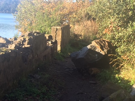 La frana ha colpito di nuovo il sentiero Acqua Acetosa intorno al bacino lacustre, già interdetto in passato da un’ordinanza comunale del 2008 per lo stesso motivo.