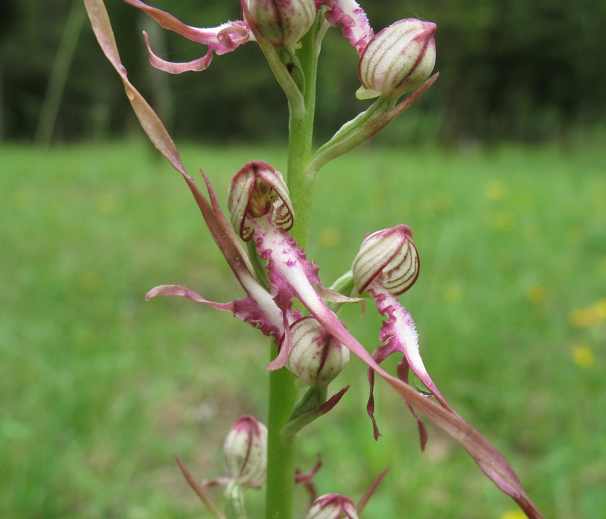 Con l’inizio del nuovo anno si avvia anche la stagione dei rilievi floristici della Riserva Naturale Monte Rufeno. Una delle prime specie monitorate è l’orchidea Himantoglossum adriaticum H. Baumann chiamata anche Barbone adriatico che deve il suo nome particolare alla forma allungata e stretta del labello del fiore. Si tratta di una specie oggetto di tutela a livello europeo (Allegato II della Direttiva 92/43/CEE “Habitat”) e presente nell’Elenco delle specie a maggior interesse conservazionistico del Lazio. I controlli effettuati in questa parte dell’anno stabiliscono la prima fase del monitoraggio che consiste nel controllo dello sviluppo delle “rosette basali” più facilmente osservabili in questo periodo rispetto all’accrescimento delle altre specie della vegetazione spontanea.