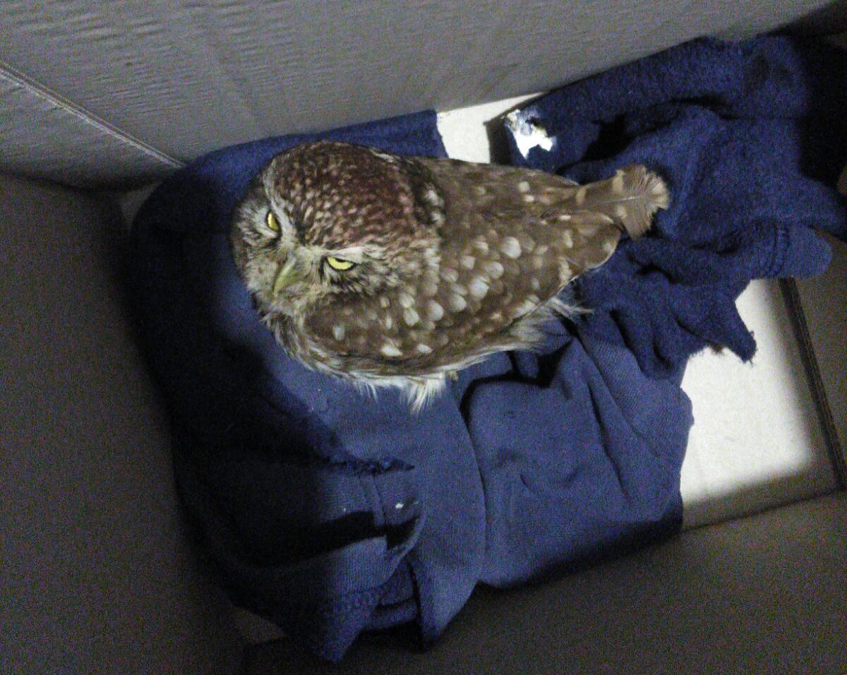 E’ già sera quando arriva la chiamata dell’elettricista Carlo: sua figlia Cecilia ha trovato un…”gufetto” colpito da un’auto di passaggio. Mi dice che è ferito ma vispo e reattivo.