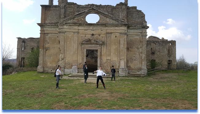 Dopo le scelte scenografiche e contestuali del 2017 e dei primi mesi del 2018 che hanno valorizzato come location la Riserva Naturale Regionale Monterano e più in generale il Comune di Canale Monterano sabato 7 aprile anche Alberto Angela, per la prima puntata della nuova serie della trasmissione “Ulisse, il piacere della scoperta” ha deciso di premiare il fascino dei questi luoghi, realizzando una ricostruzione di un seicentesco duello davanti la facciata della Chiesa Convento di San Bonaventura in Monterano.