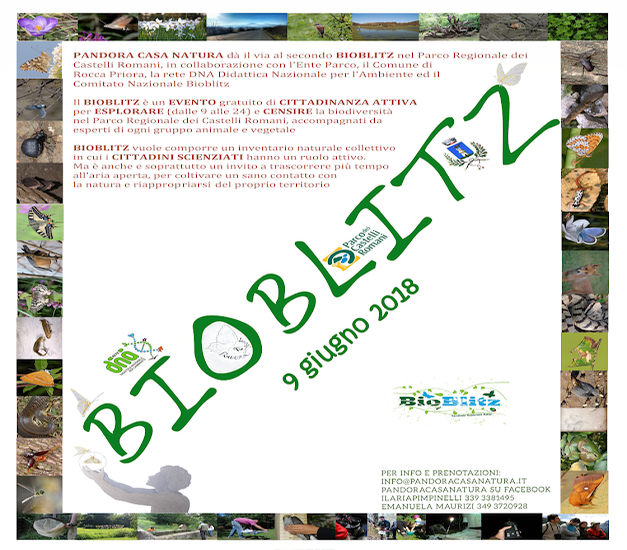 Sabato 9 giugno 2018, si svolgerà il II Bioblitz, nel Parco regionale dei Castelli Romani, organizzato da Pandora Casa Natura, in collaborazione con il Parco, il Comune di Rocca priora, la rete DNA - Didattica nazionale per l'Ambiente, il Comitato Nazionale Bioblitz. Il Bioblitz è un evento gratuito di cittadinanza attiva, per esplorare e censire la biodiversità nel Parco dei Castelli Romani accompagnati da esperti di ogni gruppo animale e vegetale.