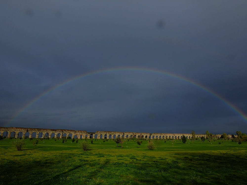 L'acquedotto Claudio è tra i più imponenti acquedotti dell'antica Roma. Qui i resti delle arcate, nella parte sud della capitale, nel parco dell'Appia Antica.
