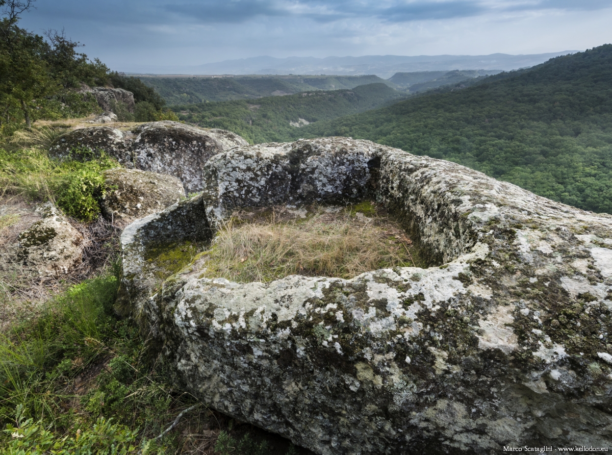 Pestarola monumentale tra Soriano al Cimino e Bomarzo, con ampio panorama verso la valle del Tevere e l'Umbria.