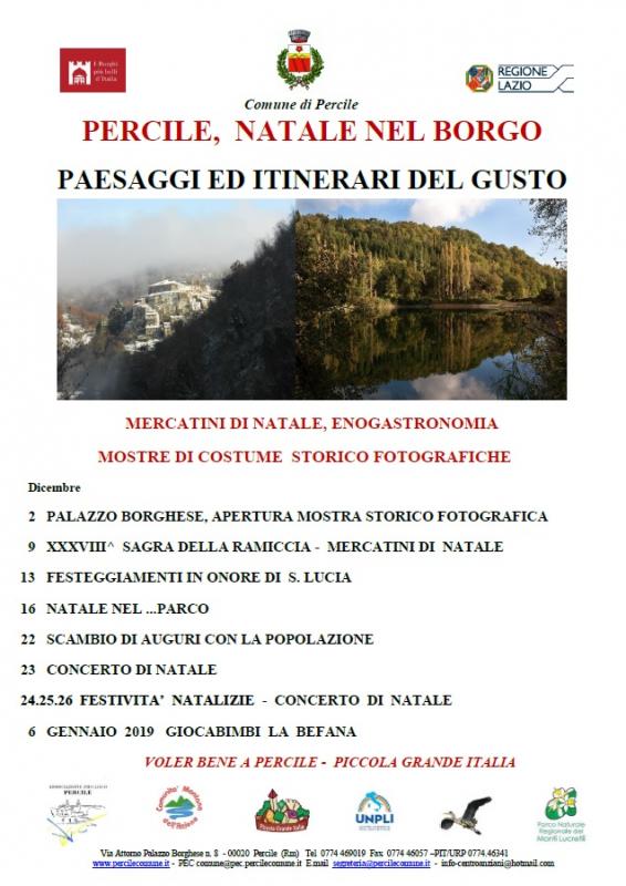 Fino al 6 gennaio per festeggiare le festività natalizie il comune di Percile (RM) realizzerà varie attività