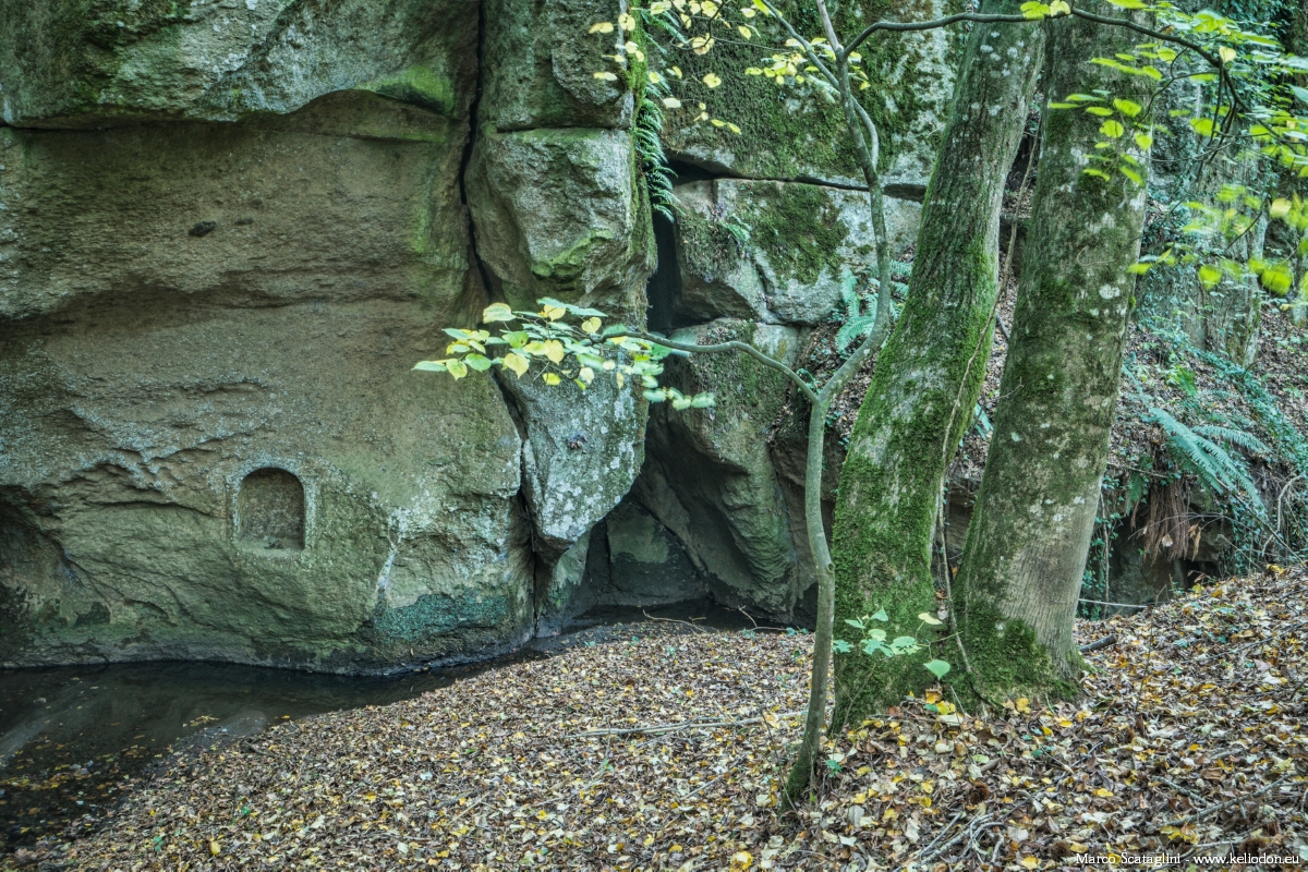 Può capitare che girovagando lungo un torrente, spinti dalla curiosità, si trovi una solitaria nicchia di epoca romana scavata in una parete rocciosa. Qui siamo all'interno di una forra nei dintorni di Viterbo.Vai al sito