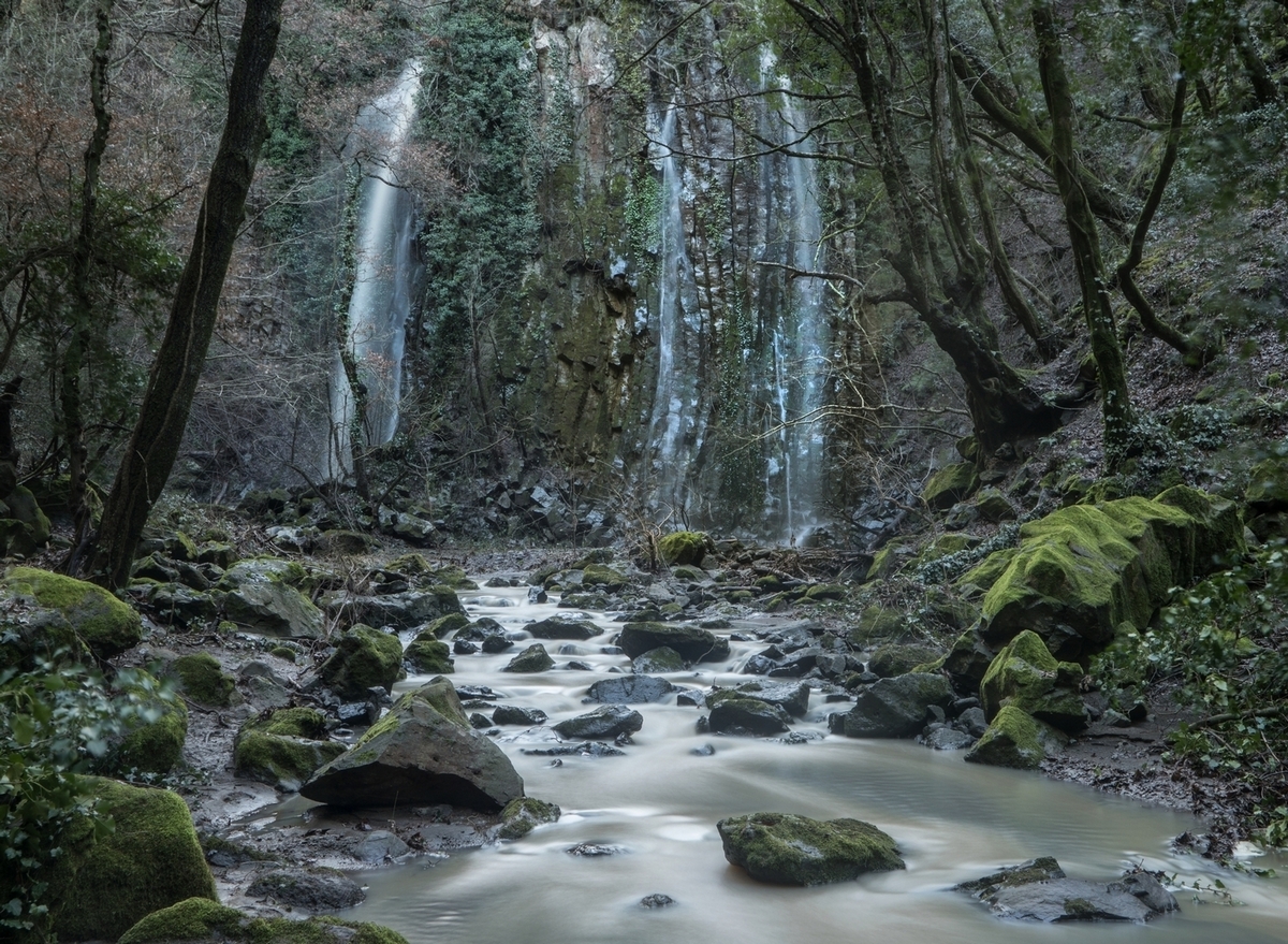 La forra del fosso Melona a Bolsena, dopo forti piogge, si può ben definire “la valle delle cascate”: se ne formano ben tre, altissime, che saltano dall’alto di una rupe costituita da basalto colonnare. Foto di Marco ScatagliniVai al sito